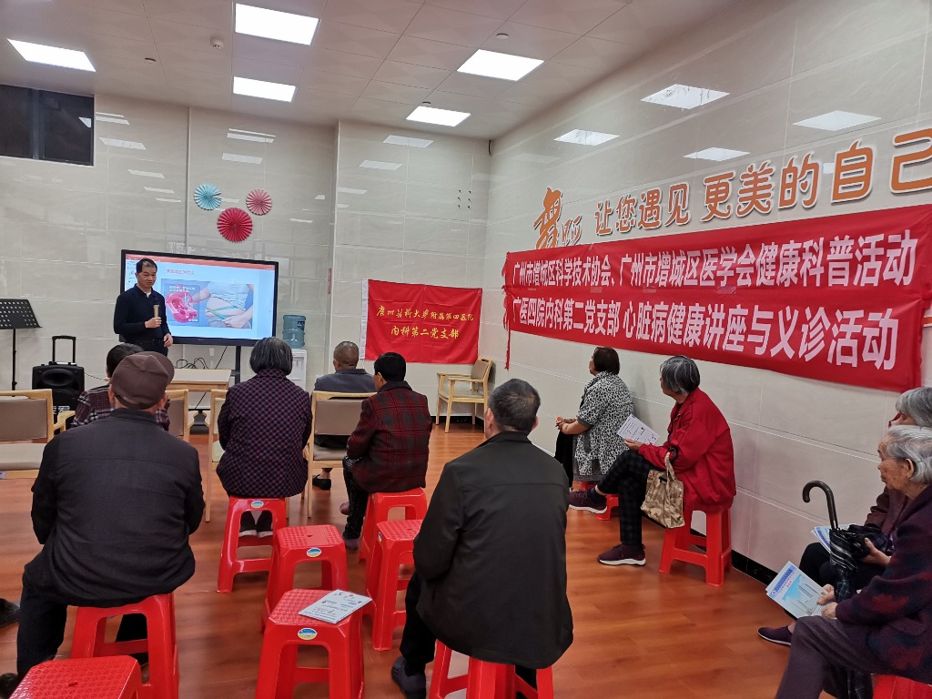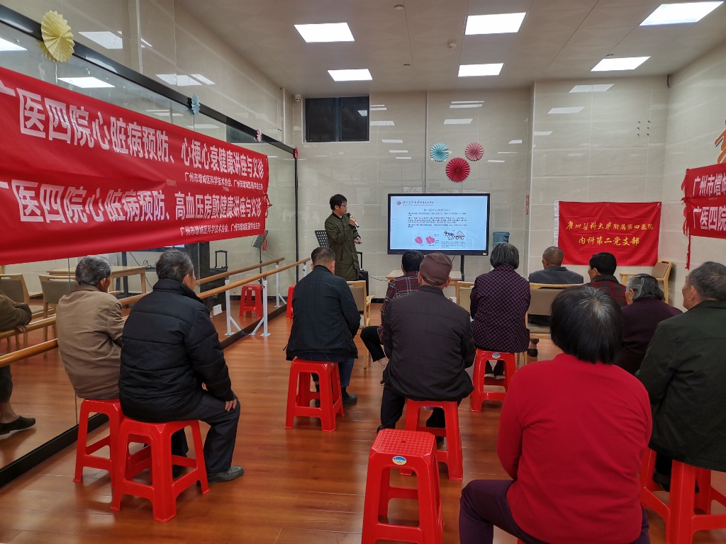 我国心血管病死亡占慢性病死亡原因首位,心梗与心力衰竭(心衰)作为最重要也是最严重的心血管病之一,已成为危害我国人群健康的重要公共卫生问题。为进一步增强人民群众的健康保护意识,贯彻二十大精神,落实“推进健康中国建设”,将优质医疗资源送到农村和社区,并以增强社区居民对心梗、心衰的防范意识,珍爱身心健康,推动医疗卫生服务与党建工作的深度融合,3月28日上午,广医四院内科第二党支部医护团队开展“关爱心脏,健康同行”主题党日活动,走进荔湖街雁塔社区综合养老服务中心,开展心衰专题义诊活动。我院胸痛中心专家苏海芳副主任医师、心衰中心专家梁思宇主治医师、健康管理专家龙玲主治医师等专家团队现场坐诊为居民提供健康咨询,解答居民健康方面的疑问,特别是针对心梗与心衰的早预防、早发现、早治疗与康复知识等医疗知识内容。