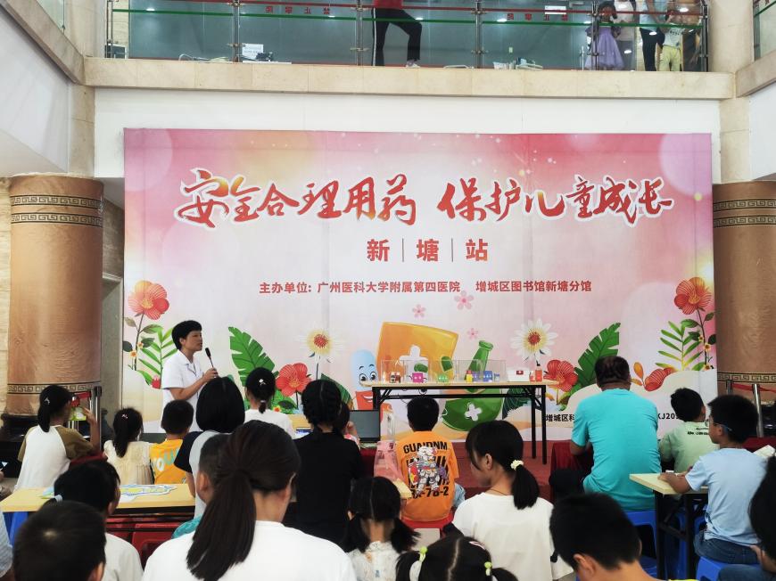 孩子是家庭的希望,儿童是祖国的未来,为增强儿童家长对用药重要性的认识,减少儿童因误服药物导致的安全用药事件,提高儿童及家长的安全用药意识,在我院团委的大力支持下,继在荔城和派潭开展的“安全合理用药 保护儿童成长”主题团日活动后, 8月27日,我院门诊医技第一团支部在新塘图书馆成功开展了“安全合理用药 保护儿童成长”主题团日活动,我院药学部副主任林英主持活动。