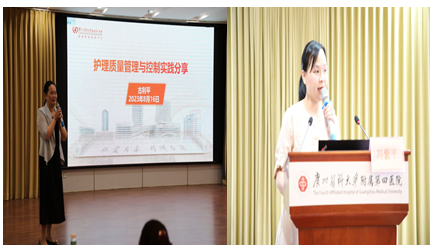 本次培训,区卫建局特邀广州医科大学附属第一医院护理部副主任古利平护理专家团队前来授课。古利平副主任以《护理质量管理实践分享》为题,分享了组织建设护理质量管理体系、护理质量全过程的控制方法以及前瞻性护理质量管理模式的运用;冯紫平老师从不良事件的分析出发,多角度介绍了不良事件的管理方法;刘卫娟护士长详细介绍了如何运用品管圈进行护理质量持续改进,并传授品管圈的主题选定、圈徽的设计、活动计划的拟定、目标值设定、柏拉图的制作等方法。授课内容生动新颖,会场氛围轻松活跃,学员们深感受益。