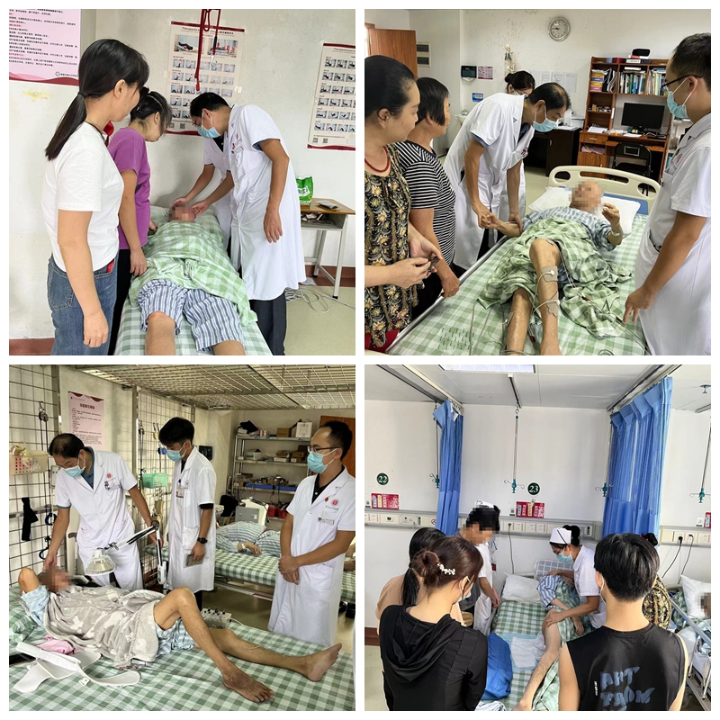 随后,康复科主任麦镇荣带领医疗团队为住院患者及家属演示脑卒中患者康复治疗流程,讲解康复治疗技术的运用技巧及注意细节,并耐心解答他们提出的各类健康问题,并提醒大家可以通过加强体育锻炼、控制体重、控制血压、戒烟限酒、低盐少油等科学的生活方式有效降低脑卒中的发病率。