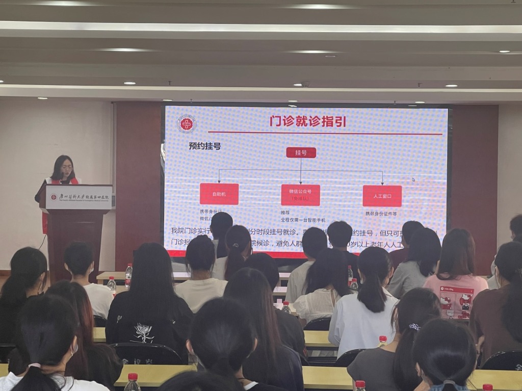 培训开始,门诊管理办公室主任赖颂辉介绍了医院发展历程、医院概况、整体布局情况。