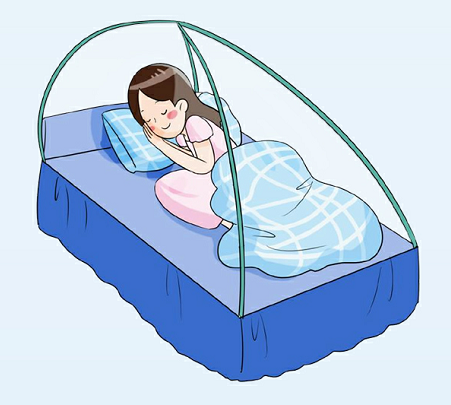 驱蚊“护盾”:暴露的皮肤及衣物上喷涂有效驱蚊剂。按说明书要求足量、定时补涂。居家安装纱门纱窗,睡觉使用蚊帐。