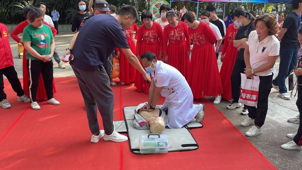 随后,林嘉隆向现场的社区居民讲解心肺复苏的知识和意义,并现场演示心肺复苏的操作,让更多人了解急救知识,受到现场民众的一致好评。
