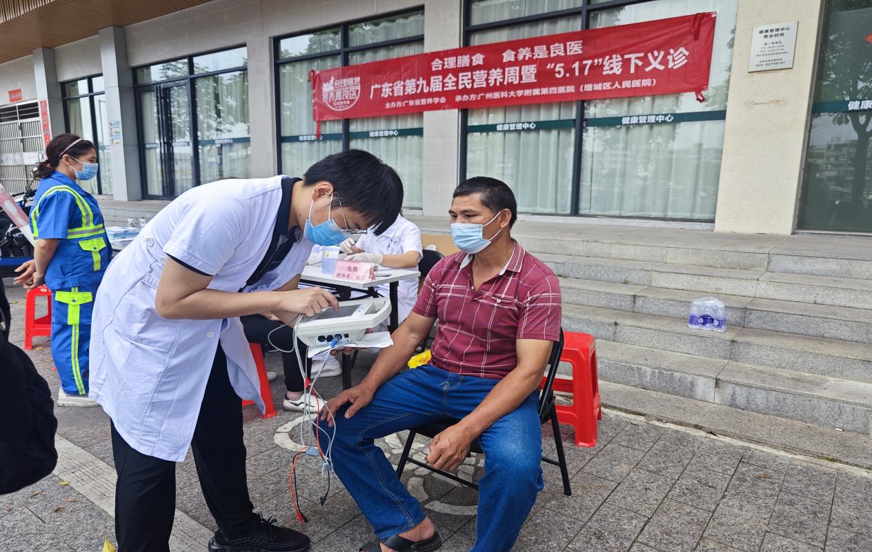 活动现场,我院临床营养科李牧副主任、蒋婵副主任医师、邓思梅医师、郭燕平副主任护师等专业医护人员热情耐心地接待每一位前来咨询、就诊的群众,通过发放宣传手册、现场为居民量血压、测血糖、腰围、臀围、人体成分分析仪、营养不良分析仪等方式,为他们提供切实可行的营养指导。