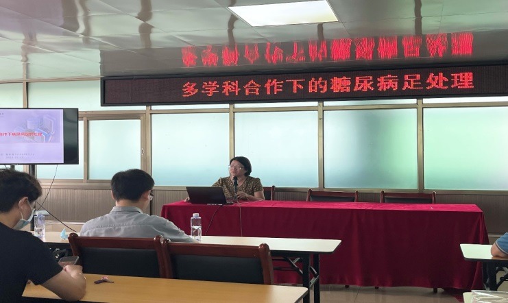 紧接着,我院陈彩青护士围绕“多学科合作下糖尿病足的处理”,用案例分析糖尿病足的多学科联合治疗及新技术使用,早期正确的预防和治疗,强调多学科合作是关键。