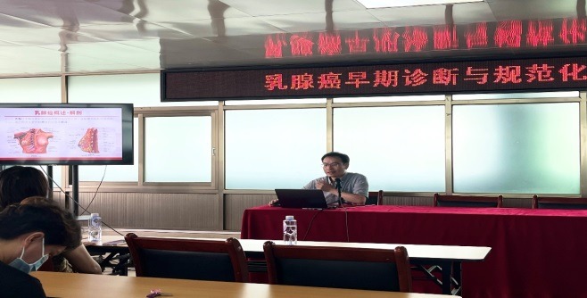 随后,我院甲乳外科何文广副主任医师围绕“甲状腺疾病外科治疗进展”,介绍了甲状腺疾病谱的变化,讲解了如何通过超声、超声造影、CT扫描、甲状腺核素扫描、实验室检查等的方式鉴别良恶性甲状腺结节以及良恶性甲状腺结节的非手术及手术治疗方式;谢意程主治医师围绕“乳腺癌早期诊断与规范化治疗” 绍了乳腺癌概述,检查方式、手术方式的选择。