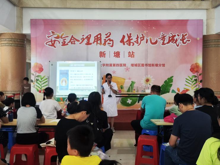 孩子是家庭的希望,儿童是祖国的未来,为增强儿童家长对用药重要性的认识,减少儿童因误服药物导致的安全用药事件,提高儿童及家长的安全用药意识,在我院团委的大力支持下,继在荔城和派潭开展的“安全合理用药 保护儿童成长”主题团日活动后, 8月27日,我院门诊医技第一团支部在新塘图书馆成功开展了“安全合理用药 保护儿童成长”主题团日活动,我院药学部副主任林英主持活动。