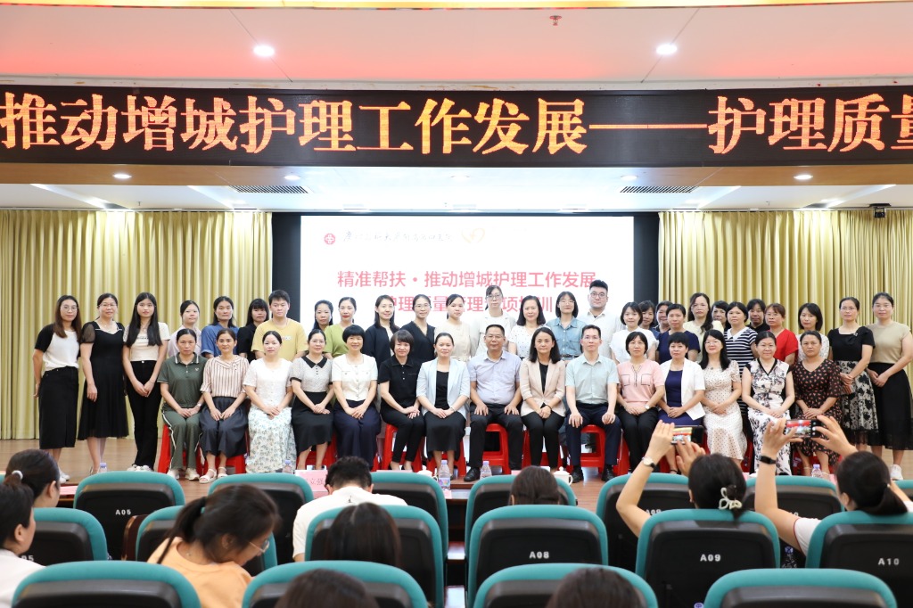 为加强护理队伍建设,提高护理管理人员能力和水平,提升护理质量与安全,促进护理工作高质量发展,近日,由区卫健局主办,我院承办的“精准帮扶 • 推动增城护理工作发展护理质量管理专项培训”在我院3号楼21楼多功能会议室顺利开展。增城区卫健局四级调研员彭立强、我院副院长夏菊梅以及区各医疗机构护理人员、护理骨干参加培训。培训由区卫健局医政科负责人陆创杰主持。