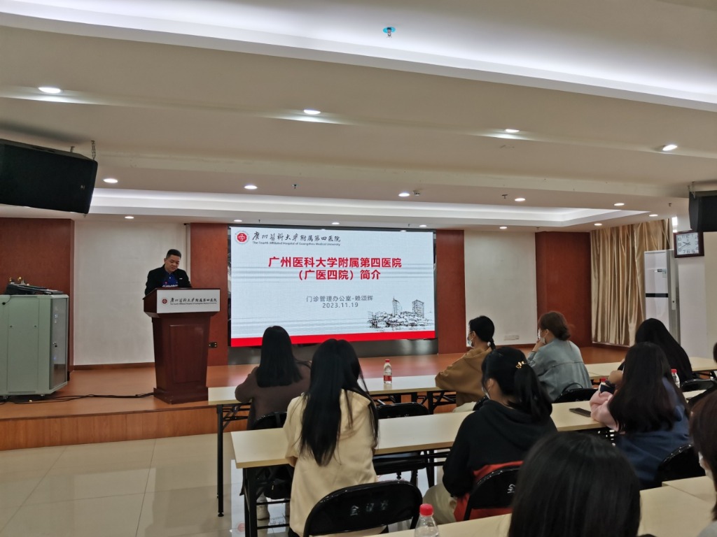 培训开始,门诊管理办公室主任赖颂辉介绍了医院发展历程、医院概况、整体布局情况。