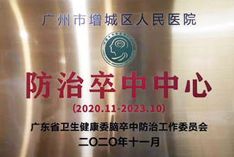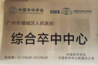 2019年6月,中国卒中中心联盟(CSCA)在“中国卒中学会第五届学术年会暨天坛国际脑血管病会议 2019”上为我院授予 “综合卒中中心”牌匾,成为增城区内唯一的国家级“综合卒中中心”。近几年来,我院卒中中心溶栓量一直位居广州市医疗机构前列。