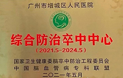 2021年5月,我院在国家卫生健康委脑卒中防治工程委员会主办的“2021年中国脑卒中大会防治卒中中心建设论坛”上,被授予国家级“综合防治卒中中心”单位,成为广州市唯一一家医院获此牌匾。