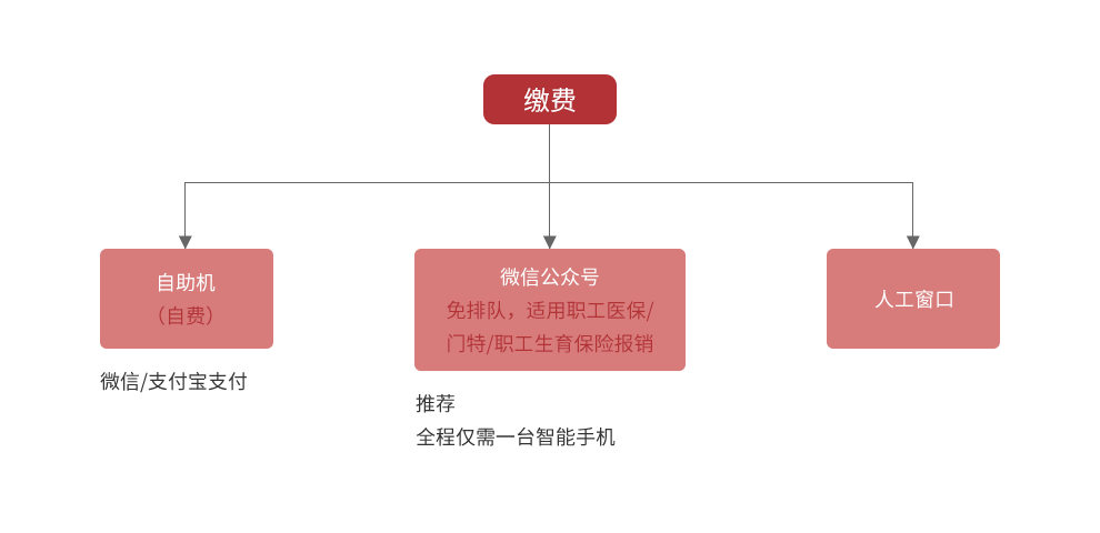 医保/公医/自费者均可在微信公众号自助缴费,缴费流程:①门诊服务、门诊缴费②选择处方类型(普通门诊/慢病者要选择病种)③选择医保/自费缴费④按提示操作