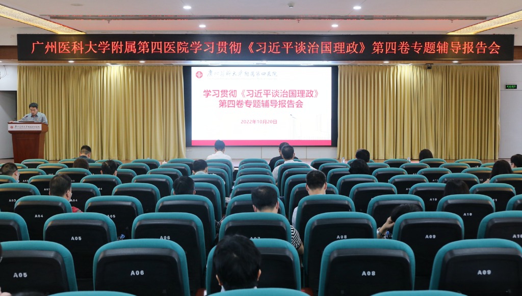 为学习好、宣传好、贯彻好《习近平谈治国理政》第四卷,进一步学深悟透习近平新时代中国特色社会主义思想,10月20日下午,我院在3号楼21楼多功能会议室举行学习贯彻《习近平谈治国理政》第四卷专题辅导报告会,特邀广州医科大学马克思主义学院刘涛教授作专题辅导。我院领导班子成员、党支部书记、中层干部以及护士长等参加了会议,会议由副院长尹传忠主持。